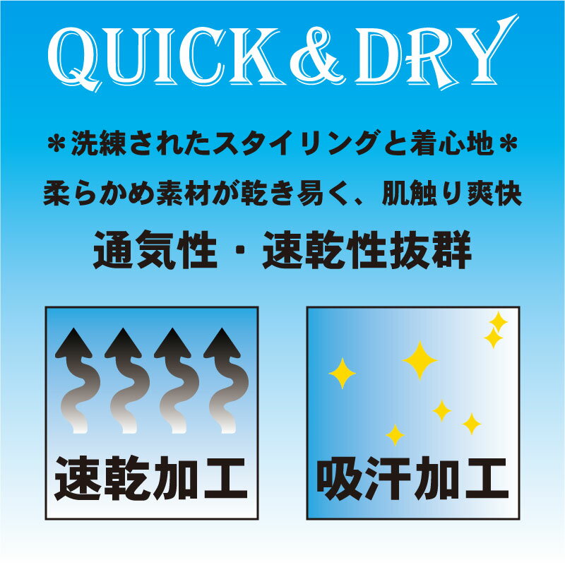 乾きが早い 通気性、速乾性抜群の生地 通気性、速乾性抜群の生地です。