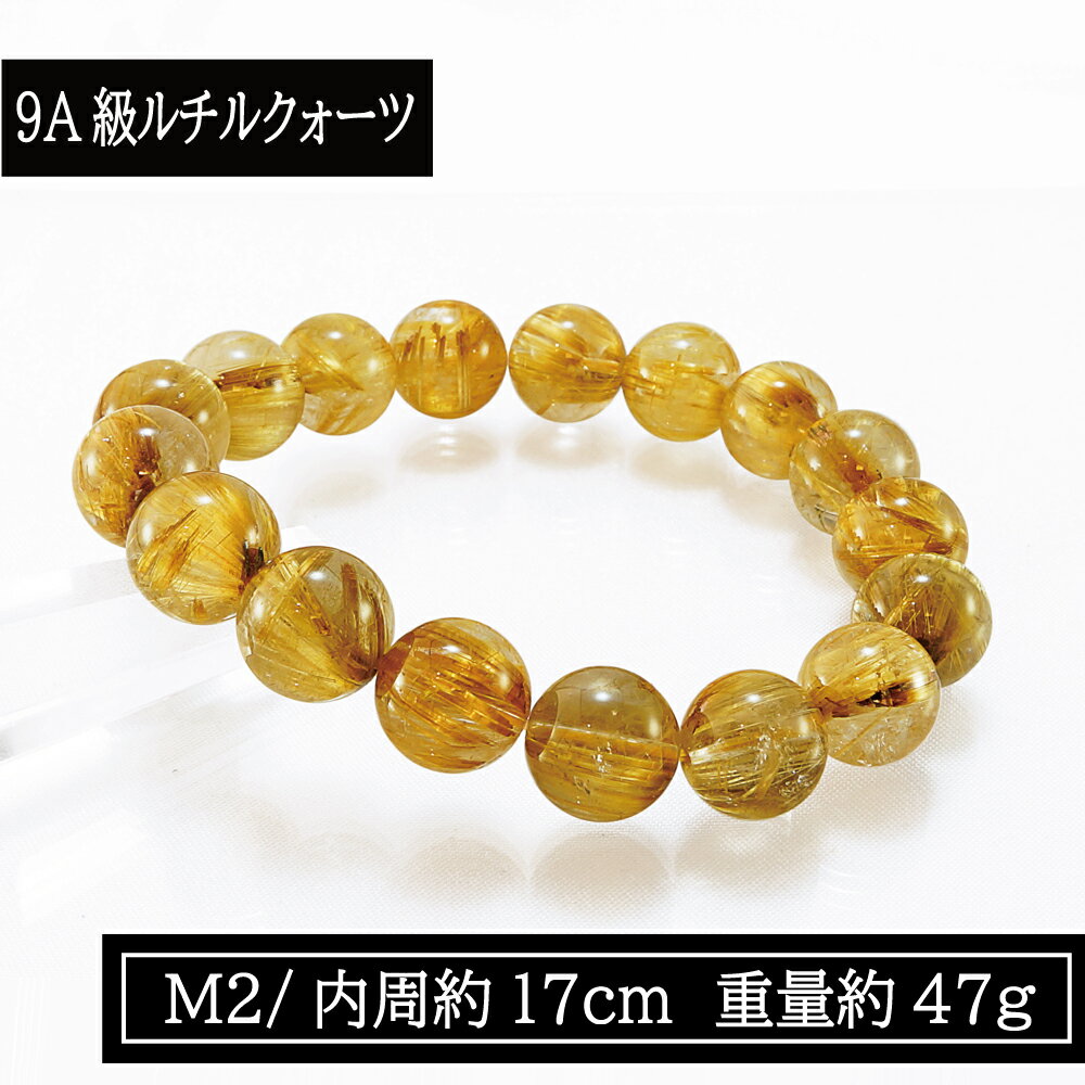 ブラジル産 9A級 金運アップ ゴールドルチルクォーツ 12mm ブレスレット M2/内周約17cm 重量約47g パワーストーン 天然石 腕輪 アクセサリー 丸玉 厄除け 風水 お守り プレゼント かわいい ギフト