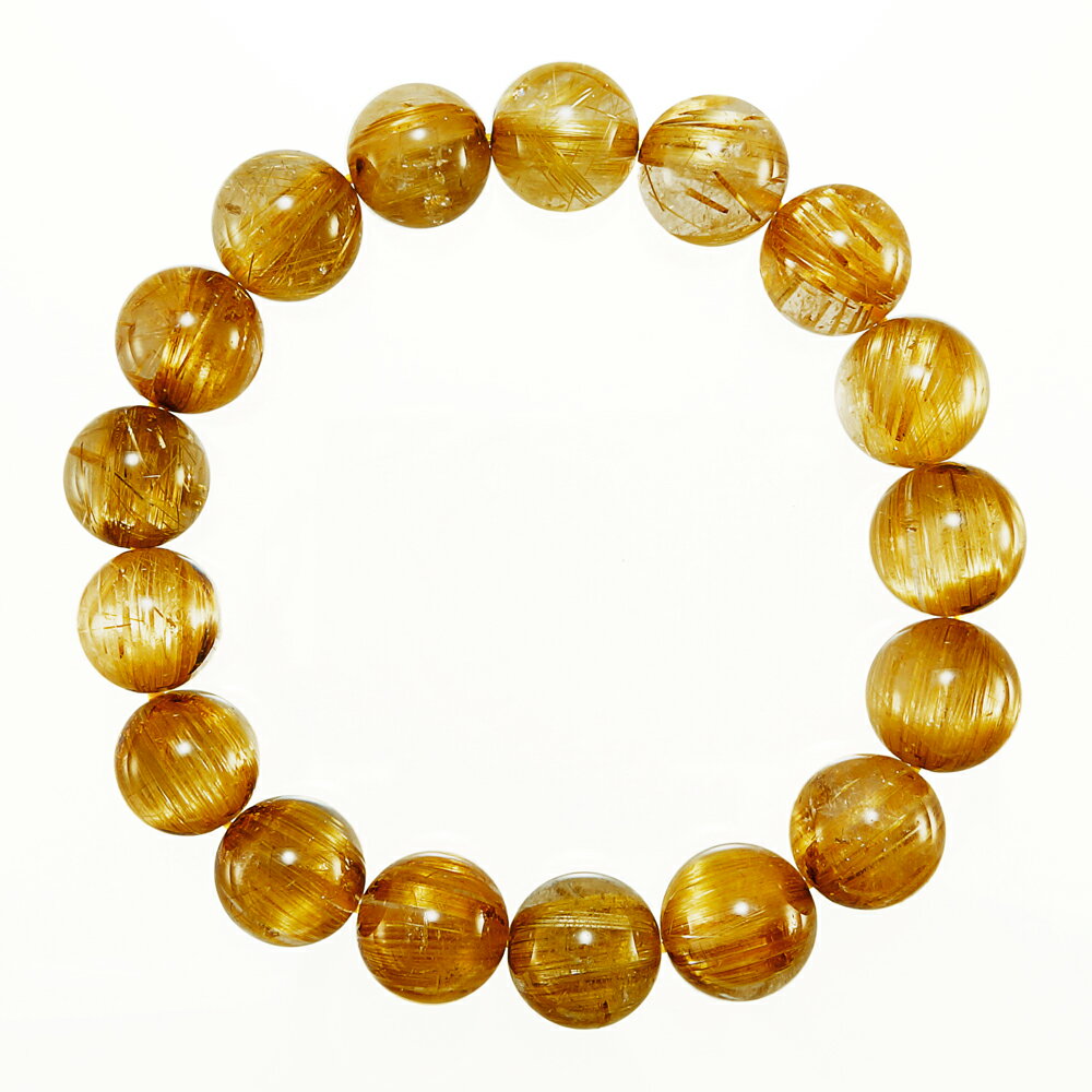 詳細: ・産地:ブラジル産 ・石:ゴールドルチルクォーツ ・石のランク:9A級(当店基準) ・玉サイズ:約12mm(±0.5) ・重量:約47g ・ブレスレットサイズ:約M2/内周約17cm ↓↓↓その他関連商品↓↓↓ ★